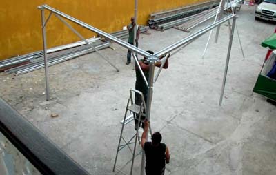 A montagem é rápida, executada por profissionais especializados. A segurança é garantida por um técnico responsável que assina as execuções de montagem.